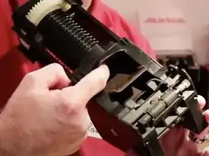 Блок варки движется вверх и вниз по направляющей, приводимой в движение удлинённой рейкой. На направляющей находятся четыре винта Torx T10. Верхний левый винт должен оставаться на месте.