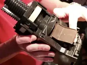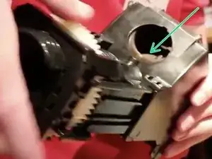 Вы видите, как крышка контейнера для порошка постепенно закрывается по мере того, как мы опускаем зубчатое колесо по резьбе.