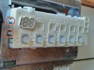 Модуль переключателей можно снять, аккуратно разжав несколько защёлок — обратите внимание на маркировку на фотографиях и осторожно подденьте отвёрткой.