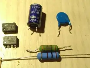 Защитный резистор: R = 100 Ом, 3Вт [2. Круг сверху]. Запчасть, например, здесь, 0.26$ (некоторые указывают, что это должен быть 10 Ом — кажется, тоже работает. Я не уверен.)