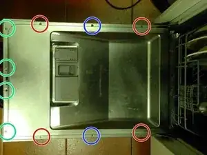 4x отмечены зелёным: короткие винты, которые удерживают крышку элемента управления.