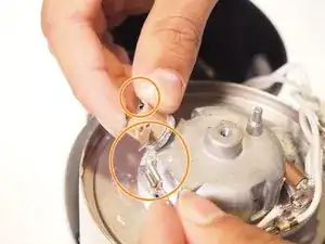 Снимите две вилочные клеммы, подключенные к нагревательному элементу.