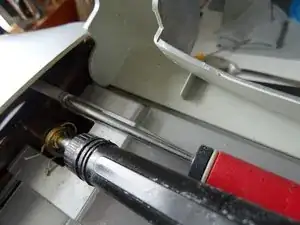 Осторожно вытяните кнопку пара. Если она заедает, сначала ослабьте крышку (шаги с 2 по 4), слегка поднимите и затем с помощью маленькой отвертки подденьте зубец.