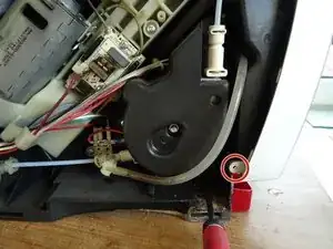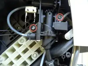 Отвинтите два винта с крестовой шлицем, которые фиксируют клапан пара. Обратите внимание на шайбу на правом винте.