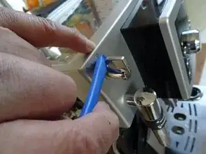 Осторожно снимите рычажок клапана пара. Для подковыривания используйте только пластиковый инструмент, чтобы не повредить рамку.