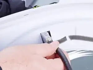 Используйте маленькую плоскую отвёртку или лопаточку, чтобы отщелкнуть обе стороны разъёма дверного выключателя.