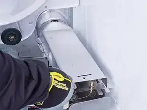 Используйте гаечный ключ‑насадку 1/4 дюйма, чтобы выкрутить два листовых винта длиной 12,8 мм, крепящие температурный предохранительный выключатель.