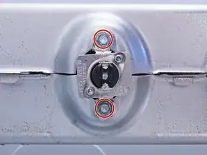 Используйте крестовую отвертку, чтобы удалить два винта длиной 15,8 мм внутри дверного проёма под отверстием барабана.