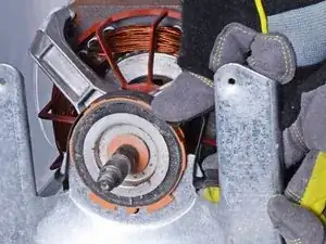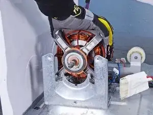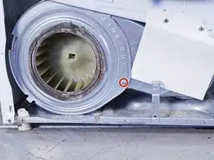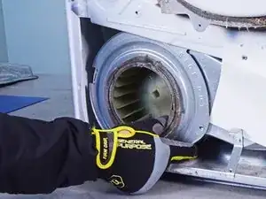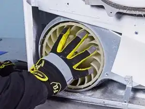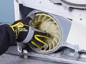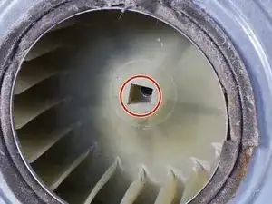 Сдвиньте корпус вентилятора к передней части сушилки на 2–5 см, чтобы освободить вал мотора.