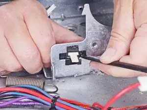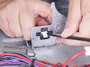 Используйте длинногубцы, чтобы отключить первый провод от переключателя ремня.