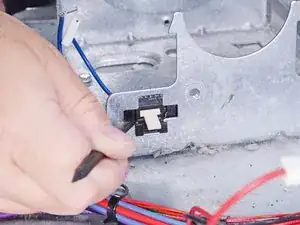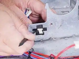 Используйте маленькую плоскую отвёртку или лопаточку, чтобы отщёлкнуть с обеих сторон разъём дверного переключателя.