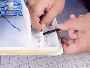 Сожмите и тяните разъём, чтобы отсоединить термистор, установленный в крышке испарителя.