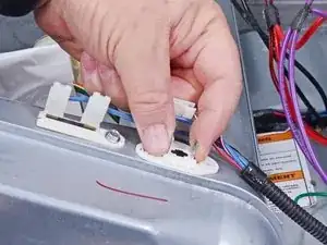 Используйте небольшую плоскую отвертку или лопатку, чтобы отщелкнуть обе стороны разъема выключателя двери.