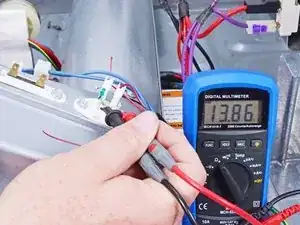 Прикоснитесь щупами к контактам терморезистора. Показание при комнатной температуре (21°C) должно составлять примерно 12,5–14,5 кОм для сушильной машины Whirlpool Duet;