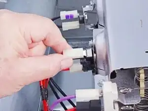 Эти компоненты управляют температурой сушилки. Входной термистор сообщает основной плате значение входной температуры, а термостат высокого предела отключает нагреватель при перегреве. Термостат высокого предела сбрасывается и позволяет нагревательному элементу снова работать после периода остывания.