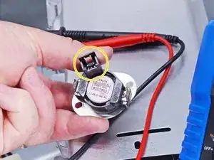 С отключённым термостатом предельного нагрева проверьте его на наличие непрерывности. При комнатной температуре он должен показывать непрерывность (менее 1 Ω).