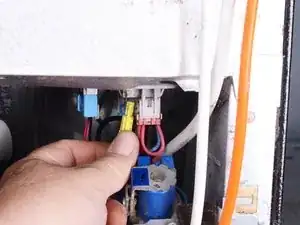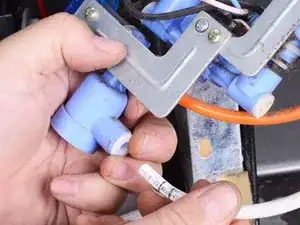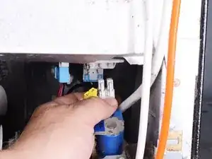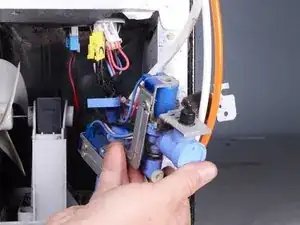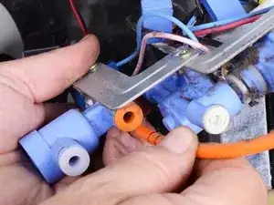 Вытащите узел впускного клапана воды из холодильника для лучшего доступа к электрическим и водяным соединениям.