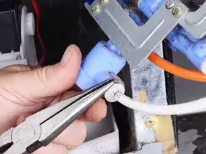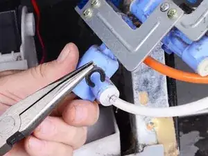 Используйте круглогубцы с длинными носами, чтобы вытащить и снять фиксирующую клипсу с трубного соединителя.