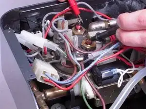Установите мультиметр в режим прозвонки и приложите щупы к двум 90-градусным контактам нагревательного элемента бойлера.