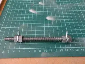 Возьмите 4 гайки для резьбового стержня (в моем случае M8) и установите 2 на одном конце стержня с кольцом между ними, а другие 2 с вторым кольцом на другом конце.
