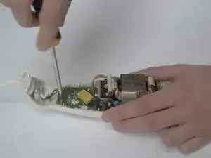 Открутите 4 винта, чтобы разобрать печатную плату, и 2, чтобы открутить провода. Затем вы можете вручную извлечь двигатель.