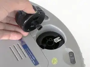Для начала переведите боковой выключатель питания bObi Pet в положение OFF и переверните устройство так, чтобы колёса были сверху.
