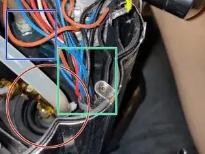 Зелёный квадрат: провода, идущие к помпе, клапану и нижнему отсеку.