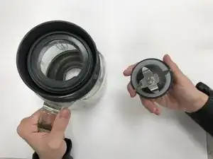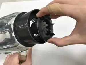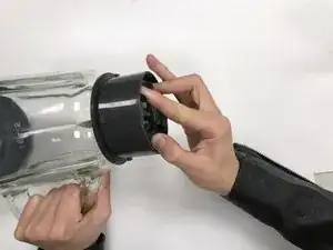 Снимите стеклянную чашу с основания блендера, снова повернув против часовой стрелки.