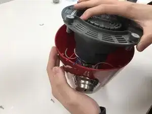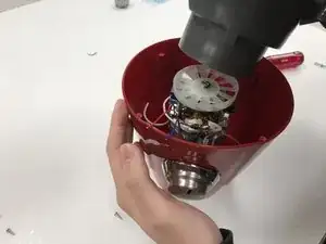 Открутите по два винта с обеих сторон защёлки, чтобы отсоединить все компоненты, включая мотор блендера.