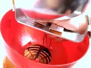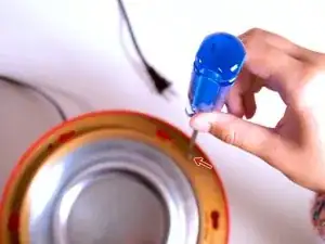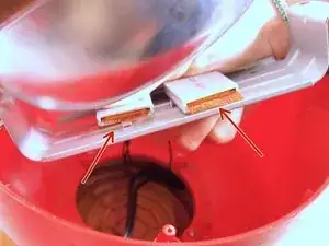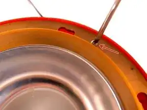 Это позволит полностью снять белую чашу и металлическую чашу с оранжевой окантовкой, оставив красную внешнюю чашу и частично оголённую плату.