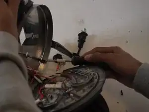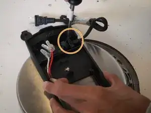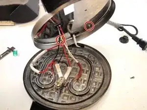 Снимите пластиковую крышку, чтобы обнажить центральный проводной узел на дне вафельницы.
