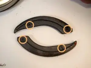 Прижимающие пластины похожи на полумесяцеобразные блоки из железа. Присутствуют только на верхней стороне.
