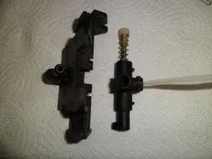 Второе и третье фото показывают готовый собранный клапан: сожмите белую часть с пружиной и вставьте её в корпус клапана. Видны выемки — они подходят только в одном направлении. :) Я теперь понимаю, что моя камера плохая, надеюсь, смогу купить получше.
