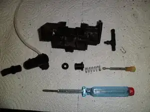 Теперь все детали должны слететь с корпуса клапана. Держите руку над ним, потому что пружина может выскочить.