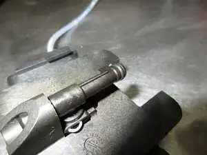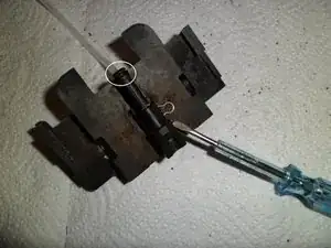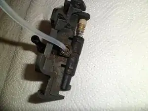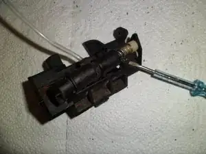 Проверните клапан и используйте отвёртку как рычаг, чтобы поддеть белую часть с пружиной. Она должна подняться; если ничего не двигается, требуется более тщательная чистка, потому что смазка здесь очень липкая.