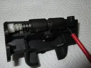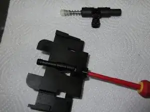 Вытолкните корпус клапана. Убедитесь, что белая крышка выходит из своего отверстия.