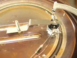Снимите кронштейн, удерживающий термовыключатель на корпусе устройства.