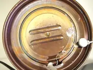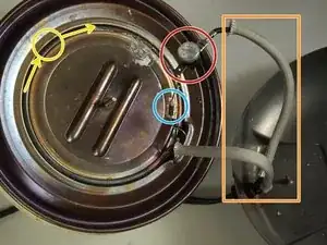 Нагревательный элемент (большая круговая спираль проводов, оборачивающая центр чайника)