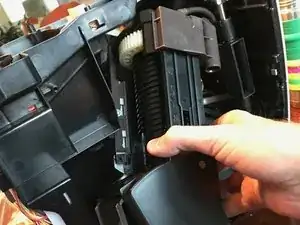 На втором фото удалена чёрная пластмассовая перегородка. Она просто защёлкивается на направляющих защёлках и так же вставляется обратно.