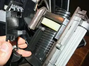 На втором фото я отметил красными кружками два из множества зажимов, которые удерживают боковины. Я несколько своих сломал и затем заново прикрепил. У меня не было руководства, и я очень хотел разобрать устройство, так что в итоге я разобрал его неправильно, а затем выяснил правильный способ :o)
