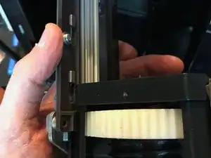 Три верхних защёлки защёлкиваются на детали над большим белым горизонтальным шестернёй, и две защёлки снизу тоже.