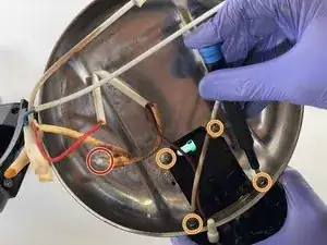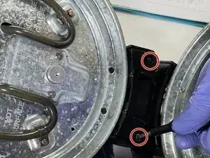 Пинцетом снимите четыре резиновые ножки в каждом углу основания.