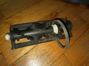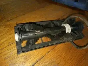 Устройство полностью разобрано! Очистите все детали. Рекомендую использовать большую портновскую булавку. Выньте все волосы и волокна из концов оси щётки и белых заглушек оси в первую очередь. Отрежьте все волосы на щётке ножницами. После очистки пропылесосьте все оставшиеся пыль и обрезки волос.