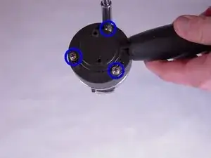 Прикрепите сборку ручки с помощью 3 винтов с крестообразной головкой. Если сборка выполнена правильно, ручка должна слегка колебаться относительно металлической части и затем возвращаться на место, когда ее отпустить.