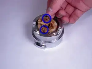 Снимите пластиковый блок ручки, открывая внутреннюю систему давления и две пружины. Обратите внимание на ориентацию ручки относительно металлической части, так как она должна быть переустановлена в точно таком же положении для правильной работы.