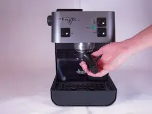 Поверните ручку портафильтра влево, чтобы снять ее с машины.