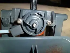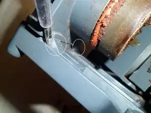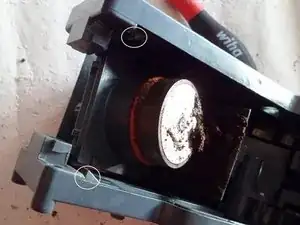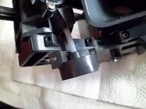 Используя крестовую отвёртку, удалите два винта, удерживающих серую скобу и белый шланг.
