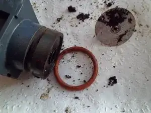 Снимите уплотнитель поршня и удалите остатки кофе из канала, в котором он находится.