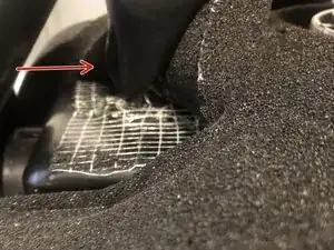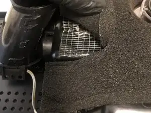 Примечание: это будет немного сложно, так как защёлки и отверстие контейнера, вероятно, прилипнут к пене. Но с небольшим терпением вы справитесь. Пенную прокладку также можно предварительно снять в этой зоне. Тогда придётся восстановить больше точек склеивания позже.