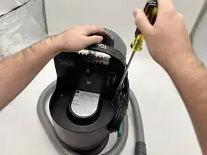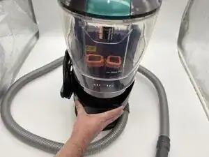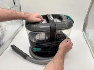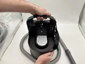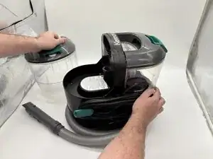 Удалите бак для грязной воды, поднимая его вверх, чтобы получить доступ к внутренностям пылесоса.